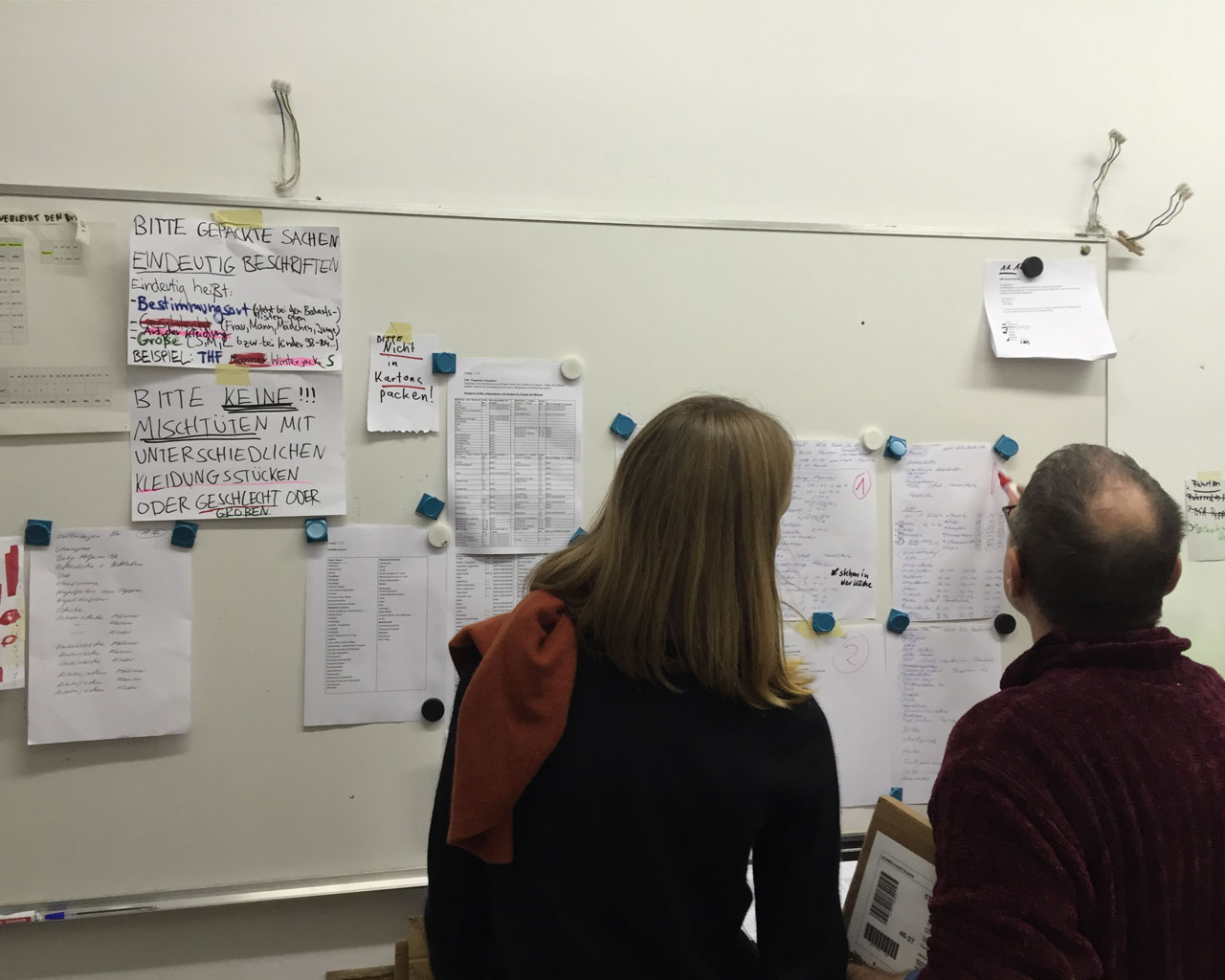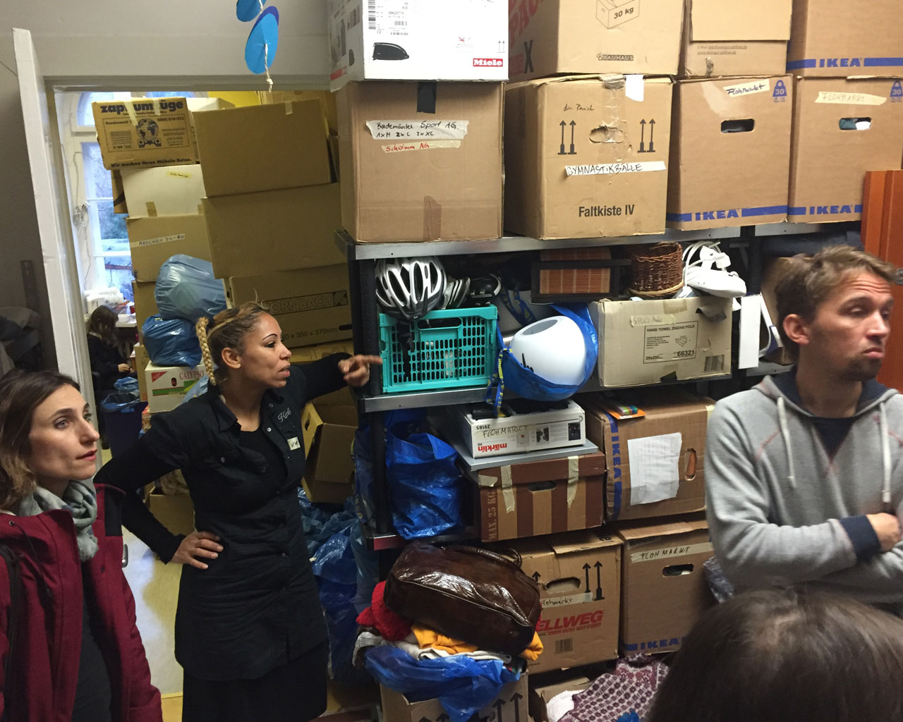 Auf unkomplizierte Weise konnten wir Kontakt mit Kreuzberg hilft aufnehmen, einer Bürgerinitiative, die konkret Flüchtlinge unterstützt. Am letzten Freitag konnten wir "einfach kommen und mit anpacken" – so funktioniert Kreuzberg hilft. Anstelle ins Büro zu gehen sind wir am 11. Dezember direkt bei uns um die Ecke in den „Spendenannahme-, -sortier und -verteilprozess“ eingetaucht.