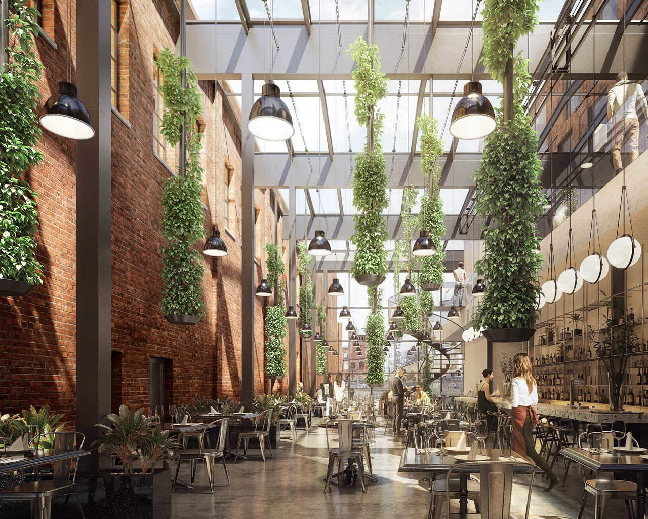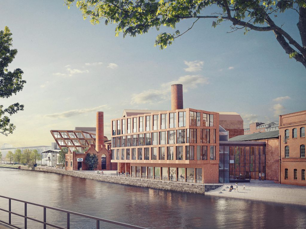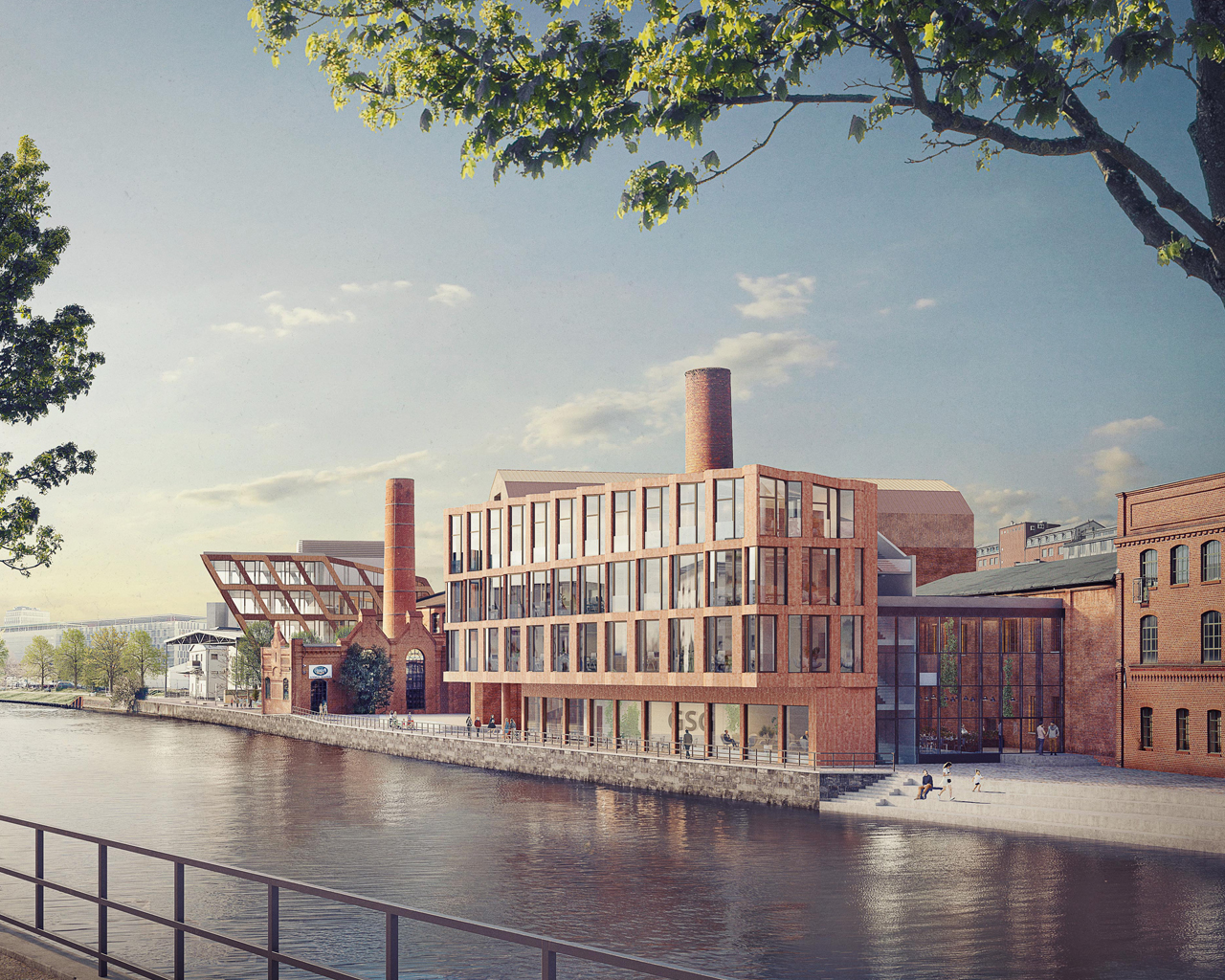 Das historische Ensemble der Gebauer Höfe mit seiner typischen Gewerbearchitektur des ausgehenden 19. Jahrhunderts prägt die Uferkante. Die bisher bereits sanierten Gebäude des denkmalgeschützten Ensembles beherbergen eine Kombination aus Büros, Ateliers, Einzelhandel und Gastronomie und werden nun um ein weiteres Highlight erweitert.