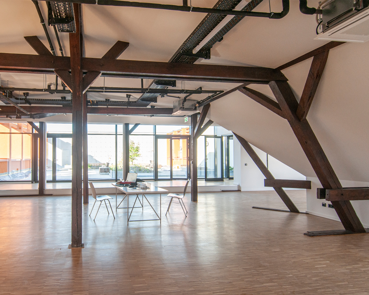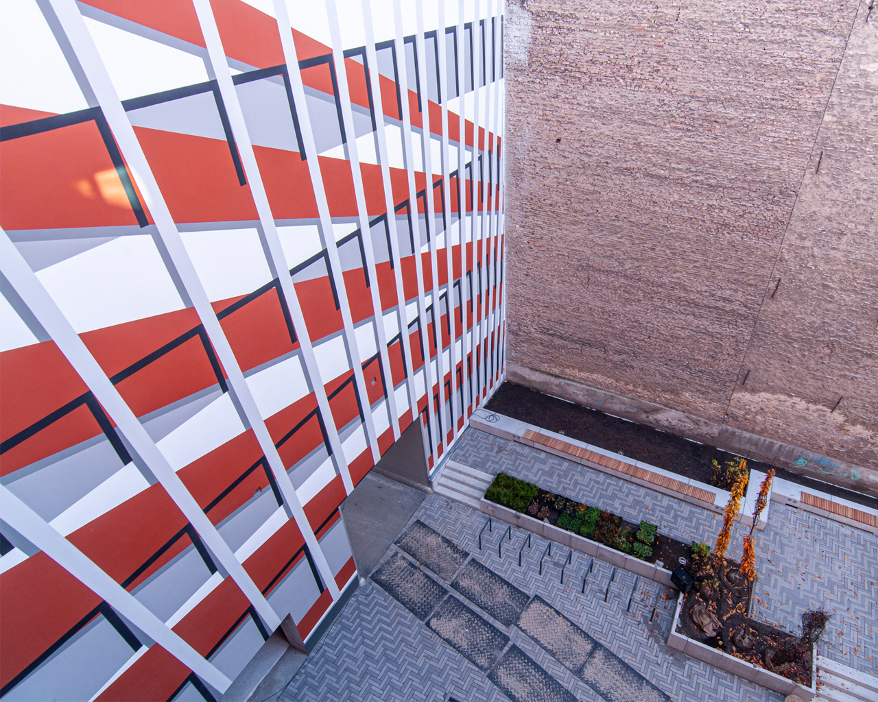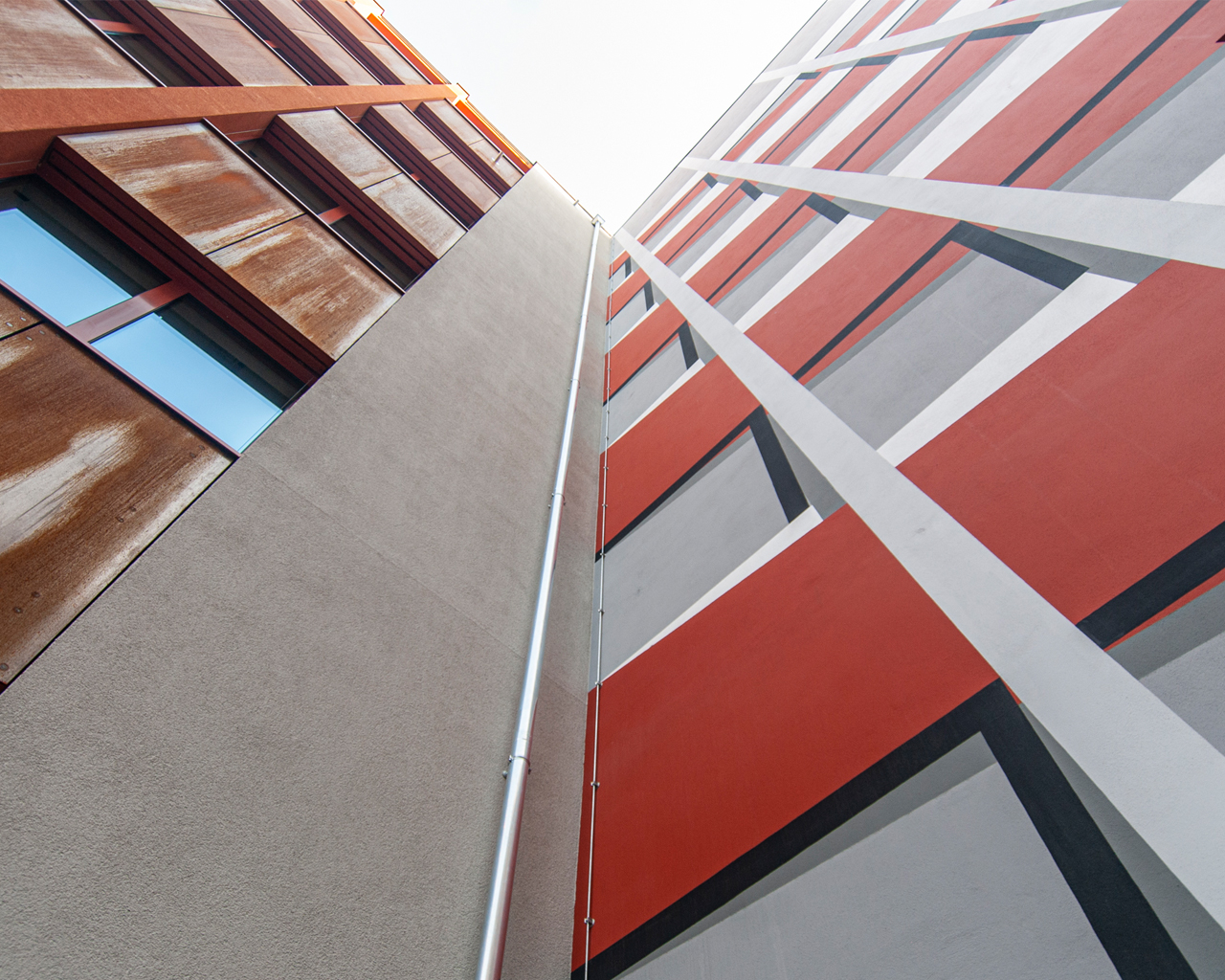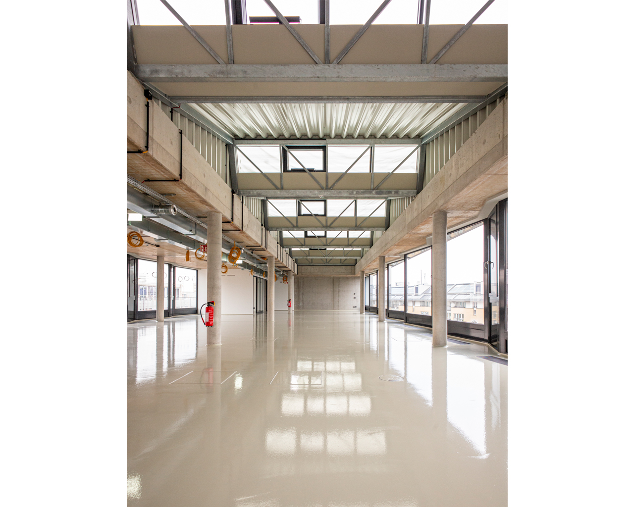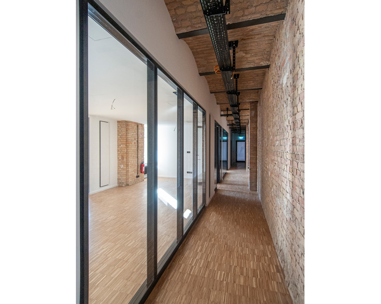 Besonderer Wert wurde auf die Symbiose des Neubaus mit der gründerzeitlichen Bausubstanz gelegt: Die historische Klinkerfassade bildet mit dem Neubauentwurf ein ästhetisches Gebäudeensemble, dass das heterogene Geflecht der verschiedenen Architekturepochen miteinander in Verbindung setzt. Ästhetik und Funktionalität des historischen Ensembles werden bewusst neu interpretiert - neben einer grundsätzlich verwandten Formensprache bedeutet dies in erster Linie eine flexible und individuelle Raumgestaltung.