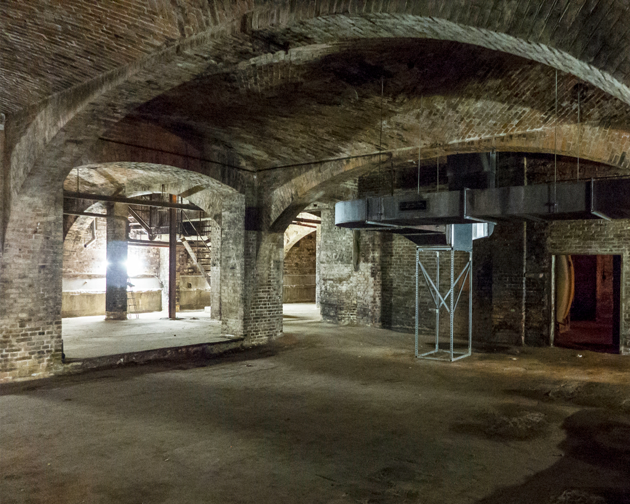 Entlang der Ostseite der Halle erstreckt sich ein Tiefhof, der in seinem Ausmaß ebenso mit der Kubatur der Halle und damit des historischen Gewölbekellers sowie mit dem flächigen Charakter des Gesamtareals korrespondiert. Sichtbar verbinden sich hier die historischen und neuen Elemente des VOLTARIUMs, indem sich der Gewölbekeller durch die freigelegten Gewölbebögen zum neuen Tiefhof öffnet.