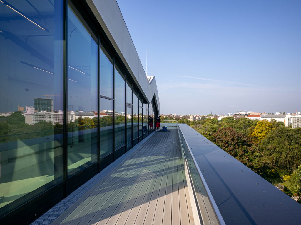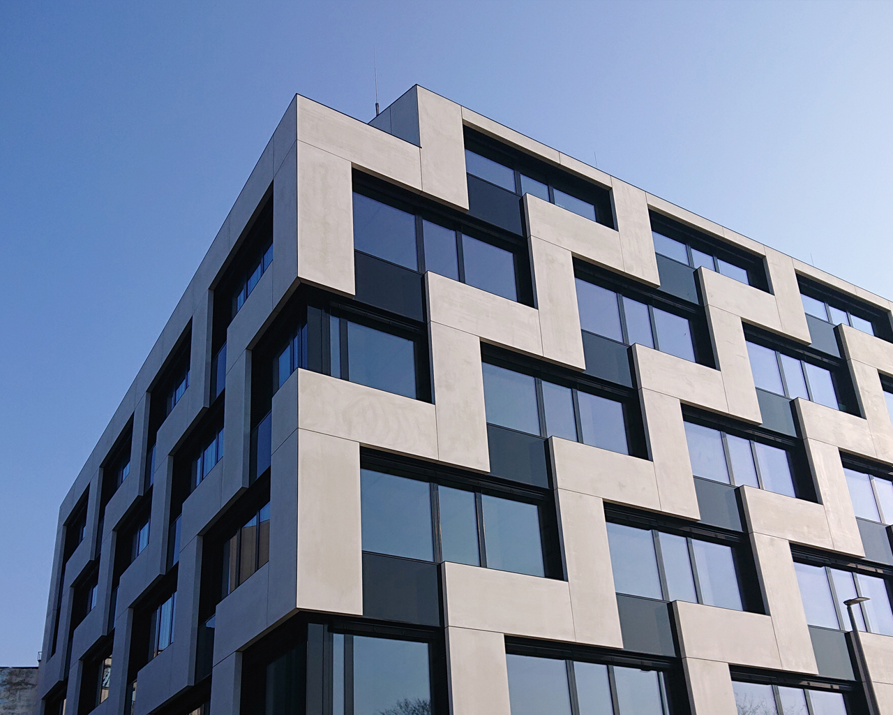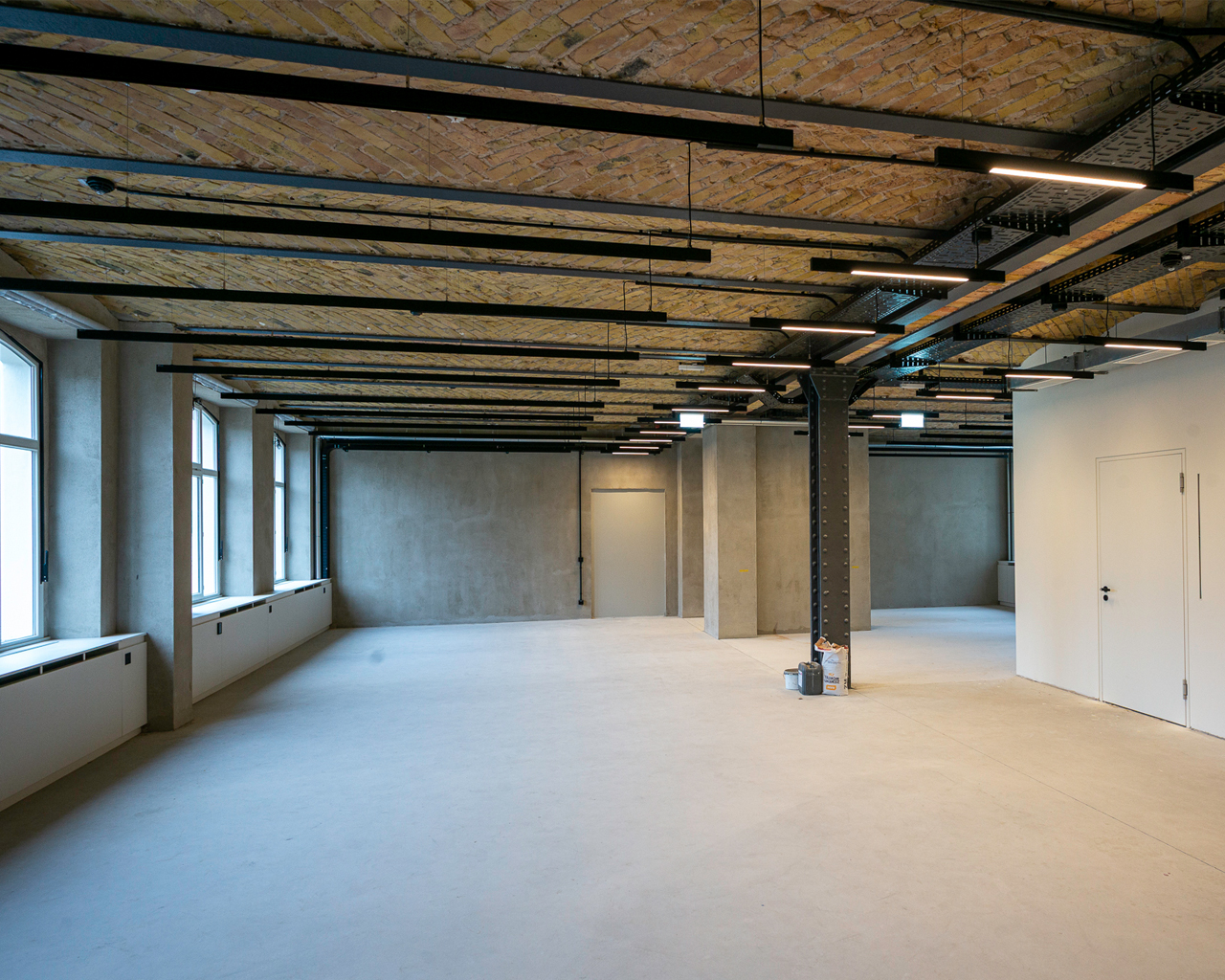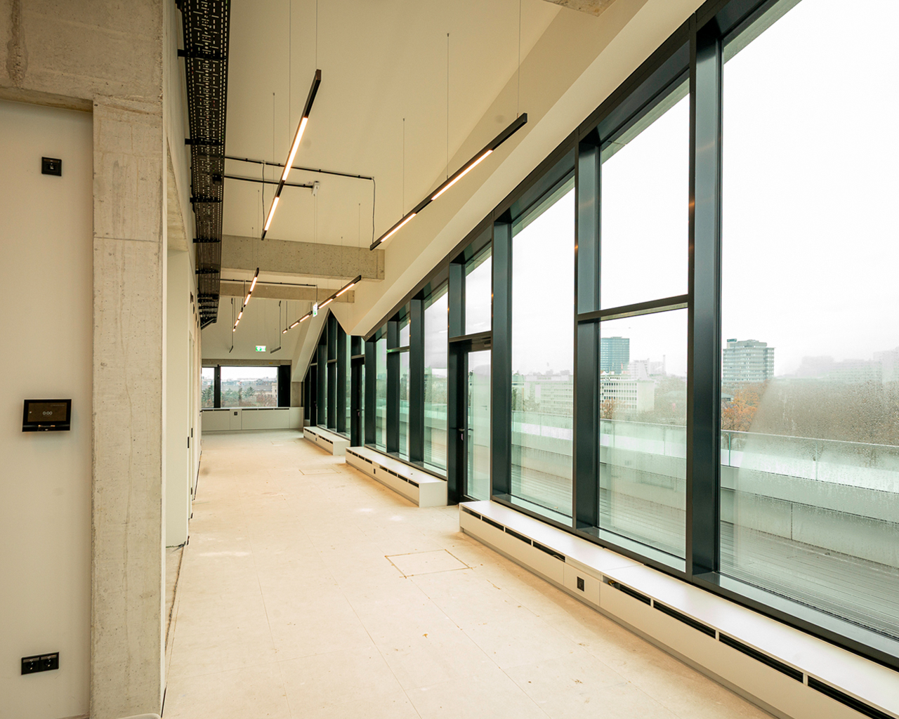 Unser Neubaukonzept nimmt die vorhandenen Gebäude-, Material- und Flächenqualitäten auf, modernisiert sie, wo nötig und setzt sie anschließend fort. Die neu entstehenden Flächen bieten offene und klare Raumstrukturen, die auf die unterschiedlichen Anforderungen und Bedürfnisse der zukünftigen Mieter flexibel reagieren können. Die klimafreundliche Ausstattung des Neubaus wird ergänzt durch seine Holzhybridbauweise sowie eine umfangreiche Begrünung der Innenhöfe.