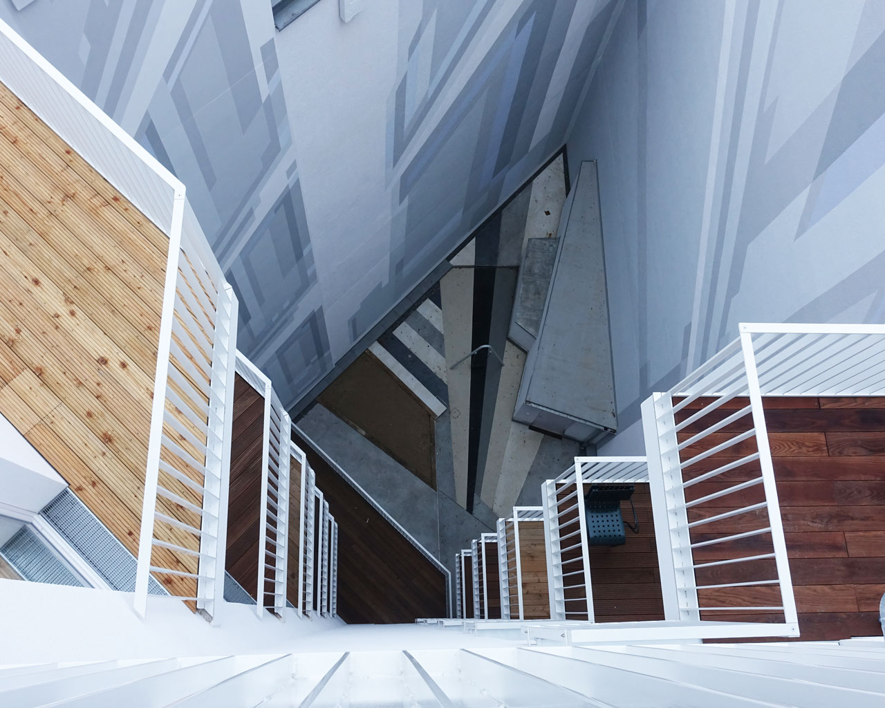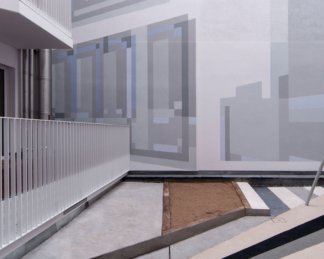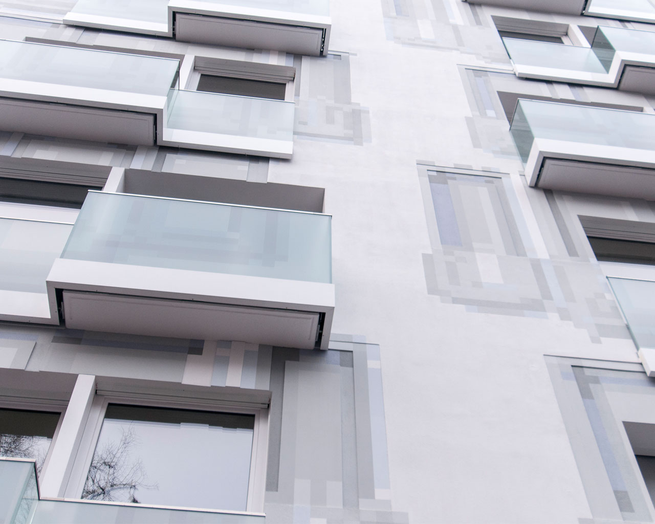 In Zusammenarbeit mit dem Künstler Thomas Eller wurde das barocke Thema der Symbiose von Kunst und Architektur aufgegriffen und als «digitaler Barock» erneuert. Das Haus wurde in Originalgröße am Computer nachgebaut und damit die historische Verschränkung von Bild— und Architekturraum um einen digitalen Raum erweitert. «Echtes» wird dupliziert, digital verfremdet und anhand eines detaillierten Farbkonzeptes in die Fassade, die Glasverkleidungen der Balkone sowie in die Innenräume und rückwärtigen Brandwände eingearbeitet. So prägt sich der virtuelle Raum als illusionistische Malerei in das Gebäude ein und entsteht der Eindruck als sei das Haus in einer Art Skype-Übertragung aufgepixelt.