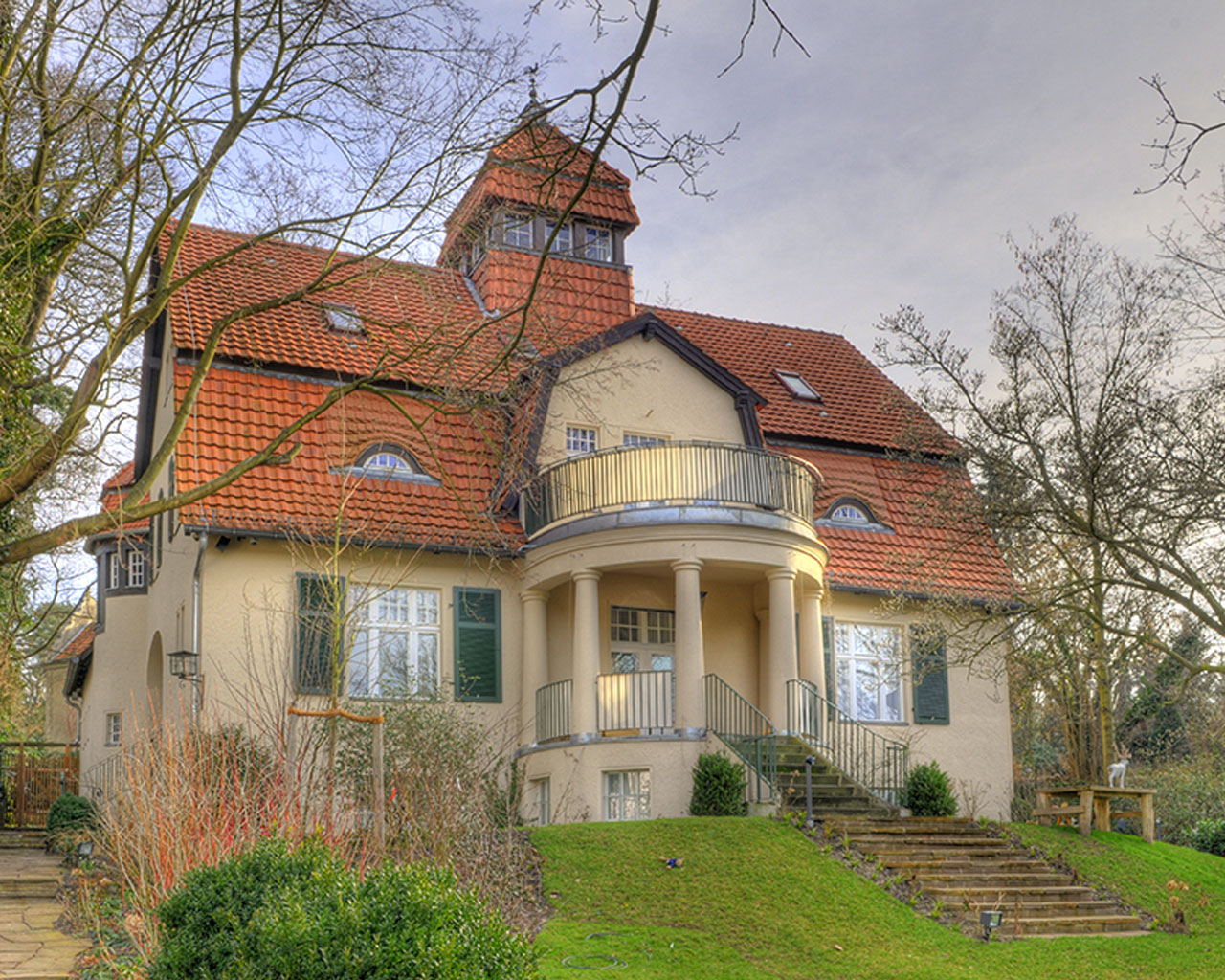 Von Emilie Winkelmann, der ersten Architektin Deutschlands, 1909 erbaut, wurde die Villa fast 100 Jahre später von einem Galeristenpaar erworben. In enger Zusammenarbeit mit der Berliner Denkmalpflege wurde das Gebäude aufwendig saniert und fehlende Originale rekonstruiert. Die Fassade erhielt einen eher neutralen Putz und Anstrich. Innen dagegen wünschten sich die Bauherren unkonventionelle Oberflächen und Materialien. Eines der Schmuckstücke ist das kleine Turmzimmer mit seinen Fenstern in alle Himmelsrichtungen.