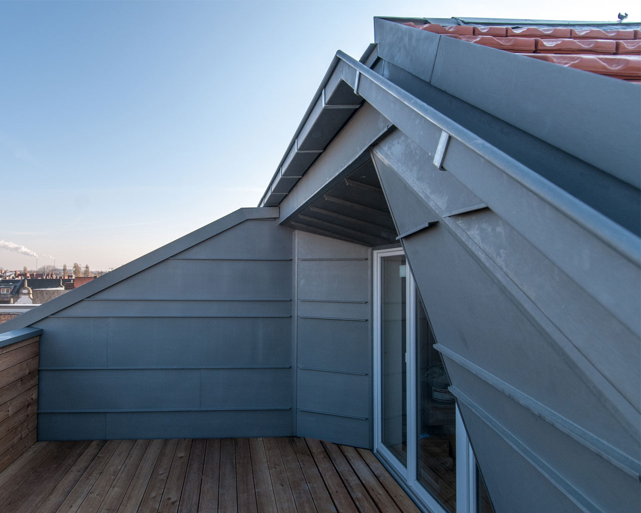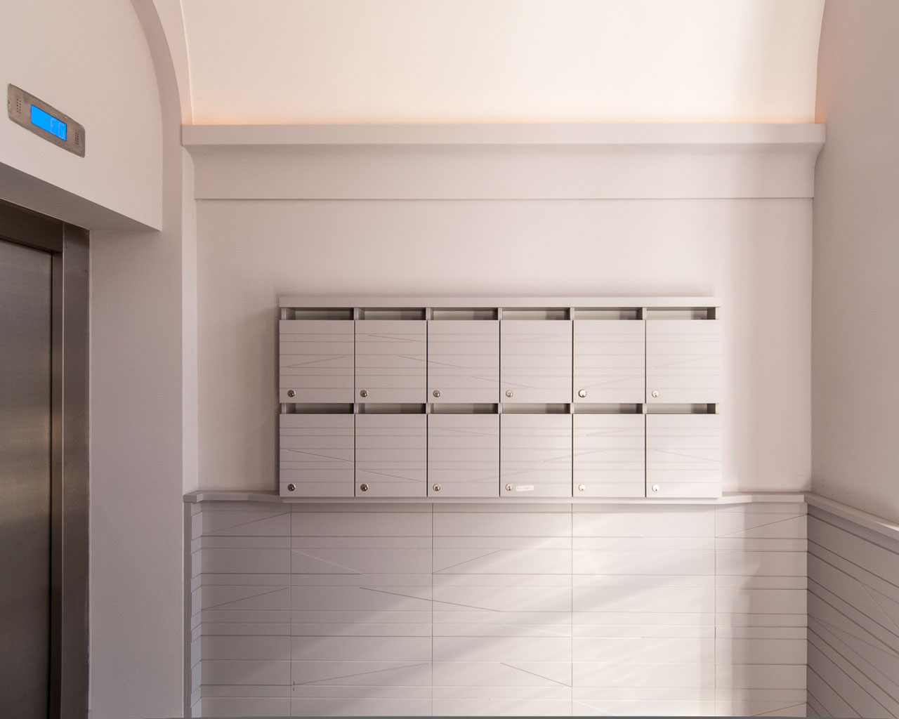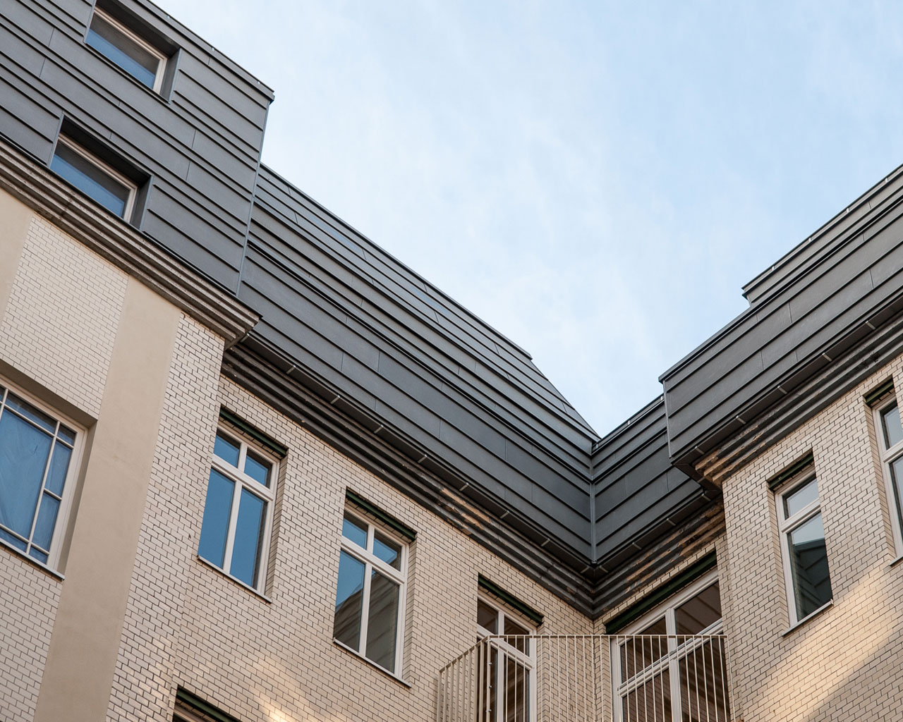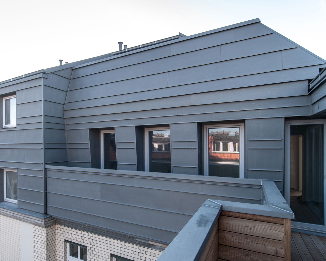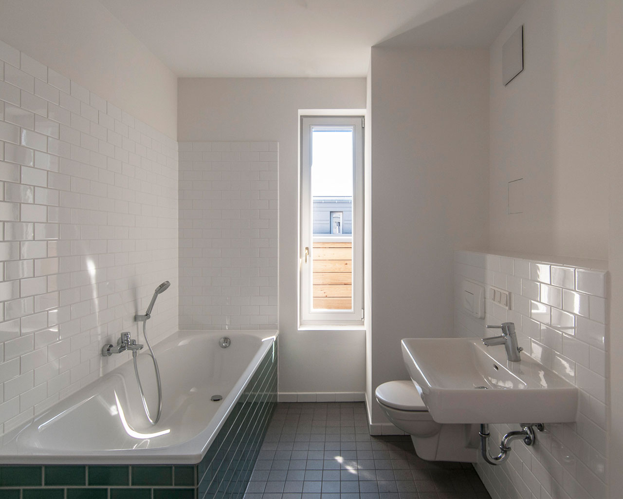 Wie bei jeder energetischen Sanierung setzten wir uns auch hier bei der Gestaltung der Straßenfassade mit der Frage auseinander: Wie lassen sich pragmatische Anforderungen mit ästhetischem Anspruch vereinen? Und konzentrierten uns ganz auf den kreativen Umgang mit dem Wärmedämmverbundsystem.